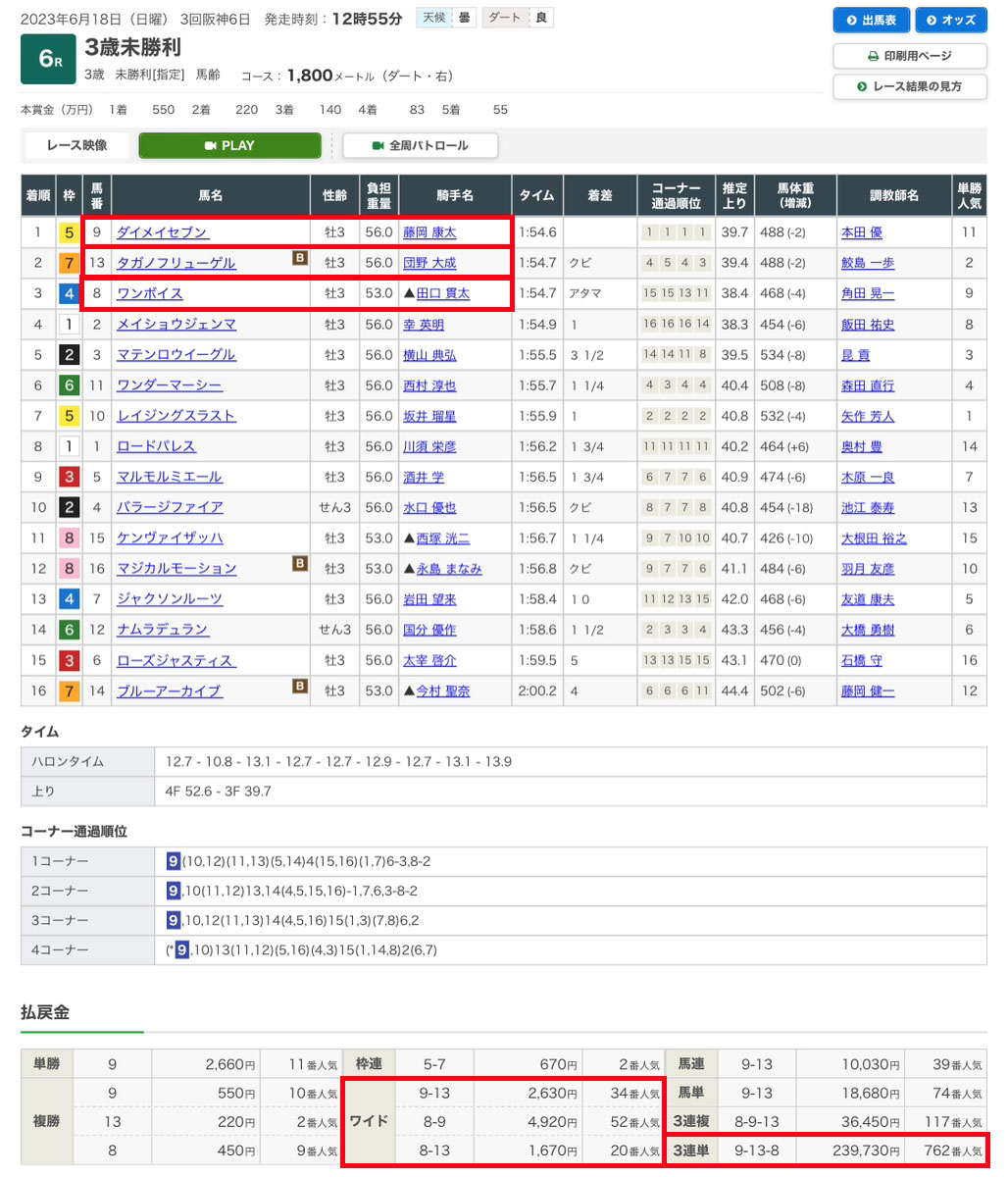 16頭中9頭も選んでおいて残念すぎる予想ですね…