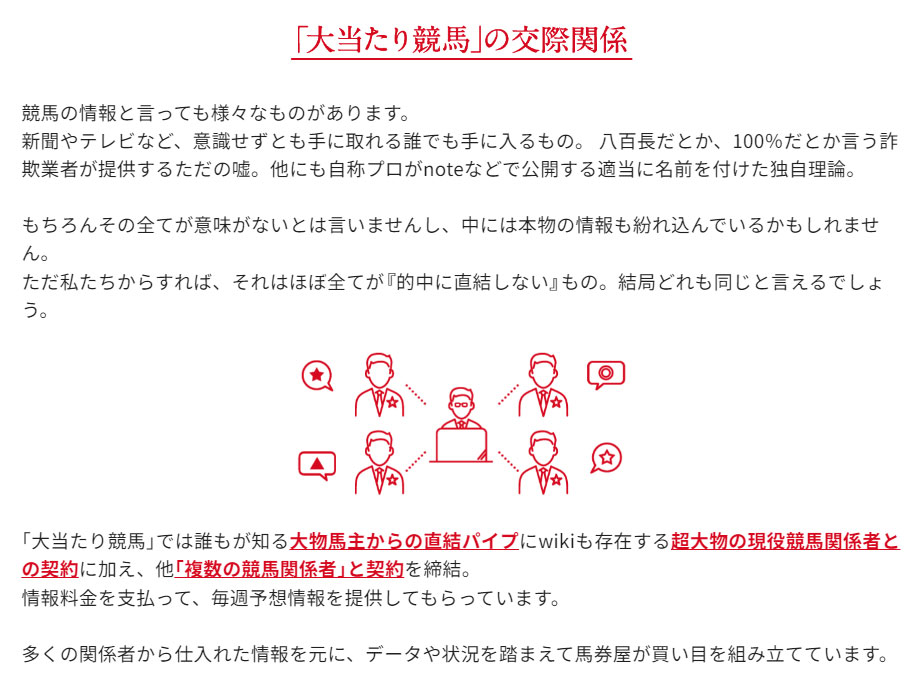 また、大物馬主の直結パイプのある複数の競馬関係者と契約しているようでその情報力がどのようなレベルか気になりますね。