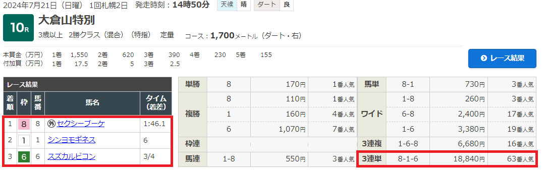 昨日に引き続き札幌競馬場の10Rの予想になります。