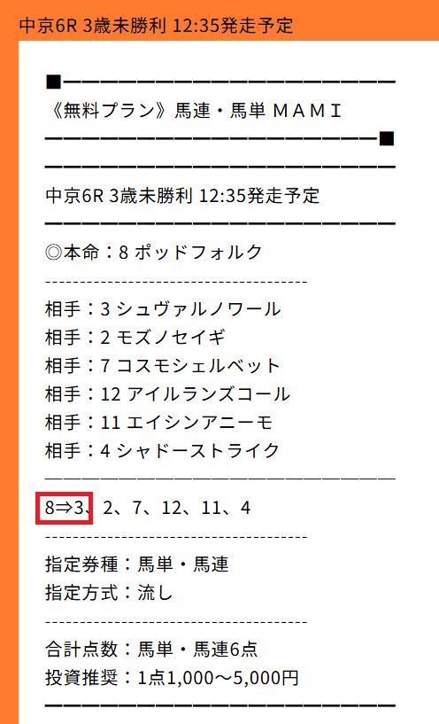 22日(土)の中京6Rの馬連&馬単予想を無料提供!