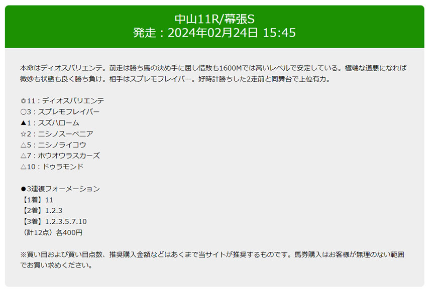 合計12点の予想で、1点400円の4,800円分の馬券を購入しました。