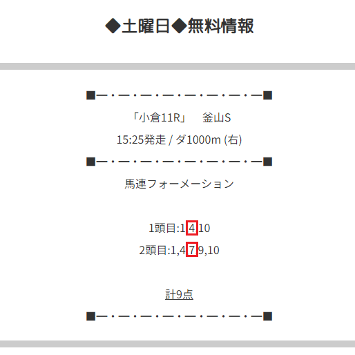 8月26日(土)小倉11Rで無料情報馬連323.9倍的中!
