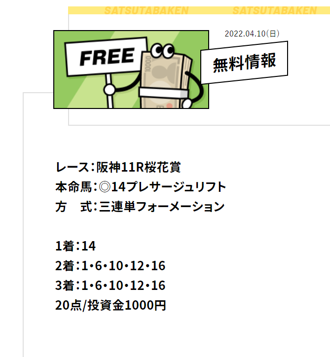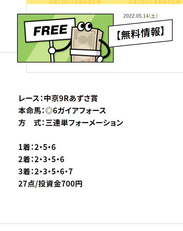 少点数買い目のご提供!