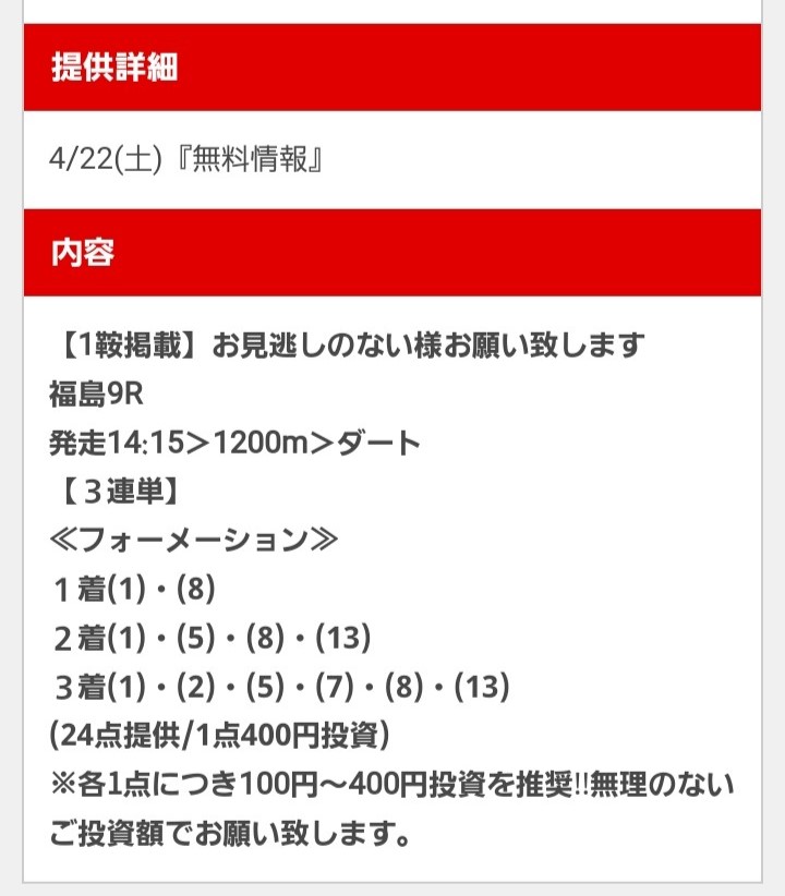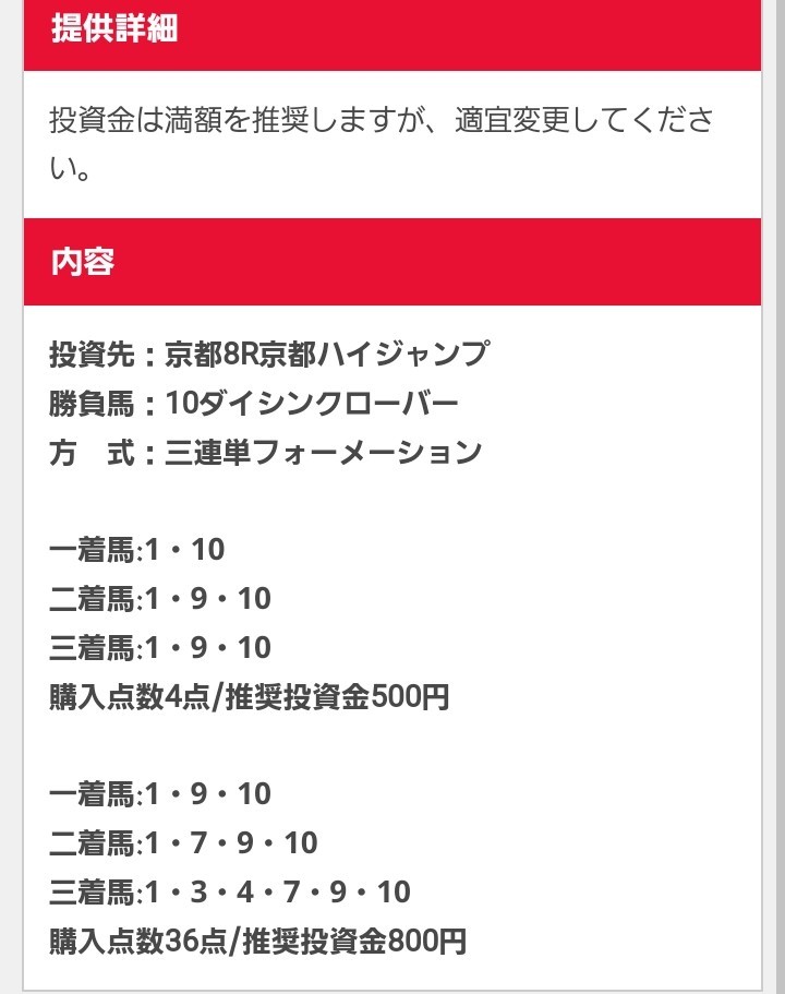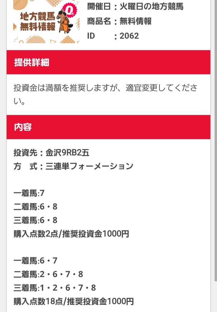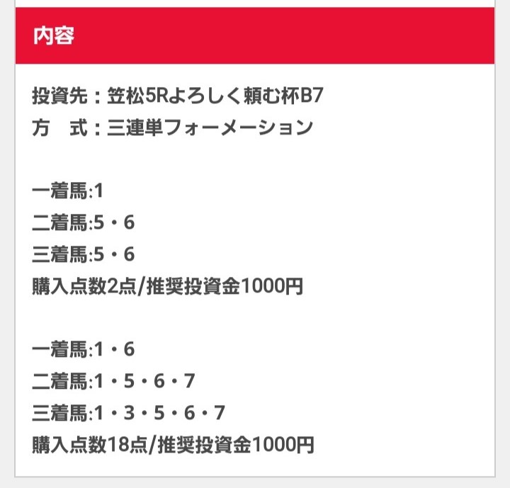 少点数買い目のご提供!
