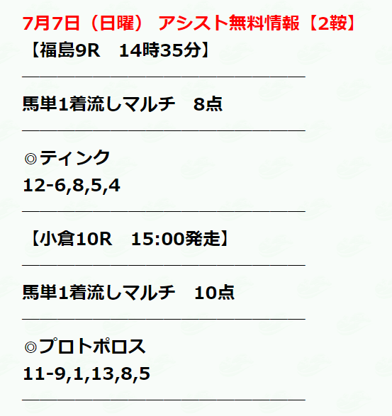少点数買い目のご提供!