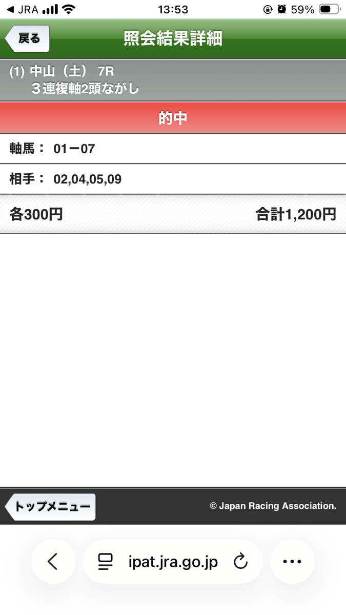 昼休み中に馬券買って、17時に仕事終わって的中してるか確認したらビックリ!!