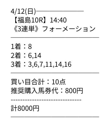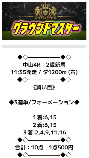 買い目公開されたのは中山7R3歳以上1勝クラス。