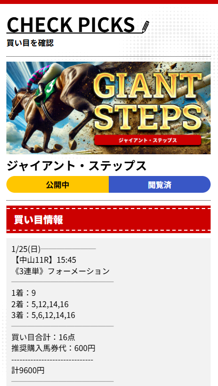 どの情報が的中確立高いか聞いてオススメされたので初回利用してみました。